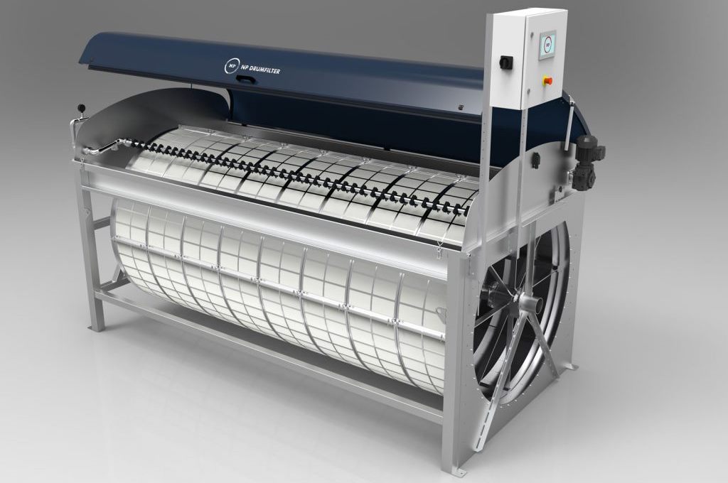 🐠 امروزه تقریبا اکثریت مزارع پرورش ماهی از درام فیلتر برای دفع مواد زائد خروجی استخر که شامل فضولات و پسماندهای داخل اب است را طریق پارچه تعبیه شده در فیلتر جدا میکند. درام فیلتر دارای یک بشکه افقی و گردان است که اطراف ان با پارچه فیلتر پوشانده شده است. مواد زائد و ذرات معلق اب پس از خروج از استخر و ورود به درام فیلتر با چرخش بشکه فیلتر به پارچه گیر کرده و با چرخش استوانه بر روی سطح موج برداشته میشوند. اب پس از پاکسازی از طریق خروجی درام فیلتر خارج شده و مواد زائد وارد سینی لجن درام فیلتر میشوند. در نهایت لجن از طریق فشار اب شستشوی درام فیتر به فاضلاب مزرعه هدایت میشود.